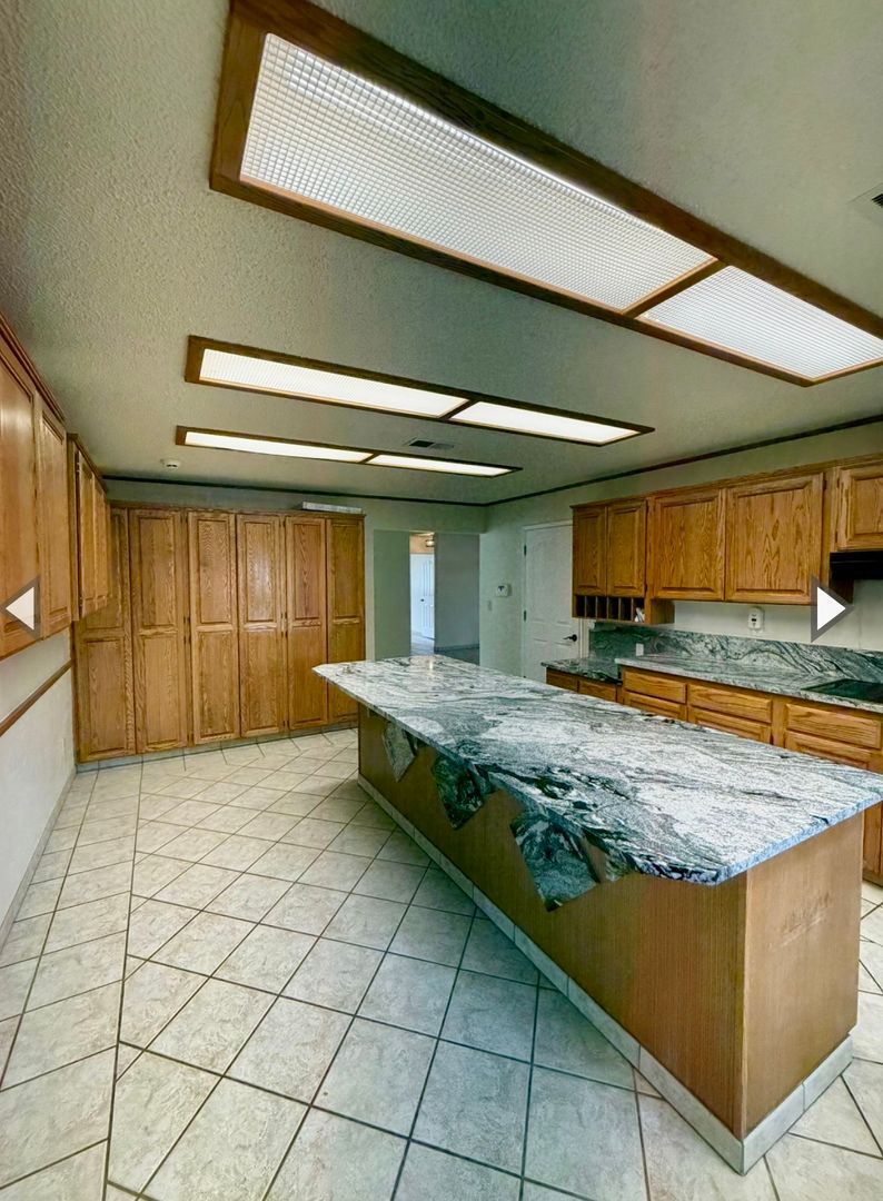 Solid granite countertops in the kitchen with large island